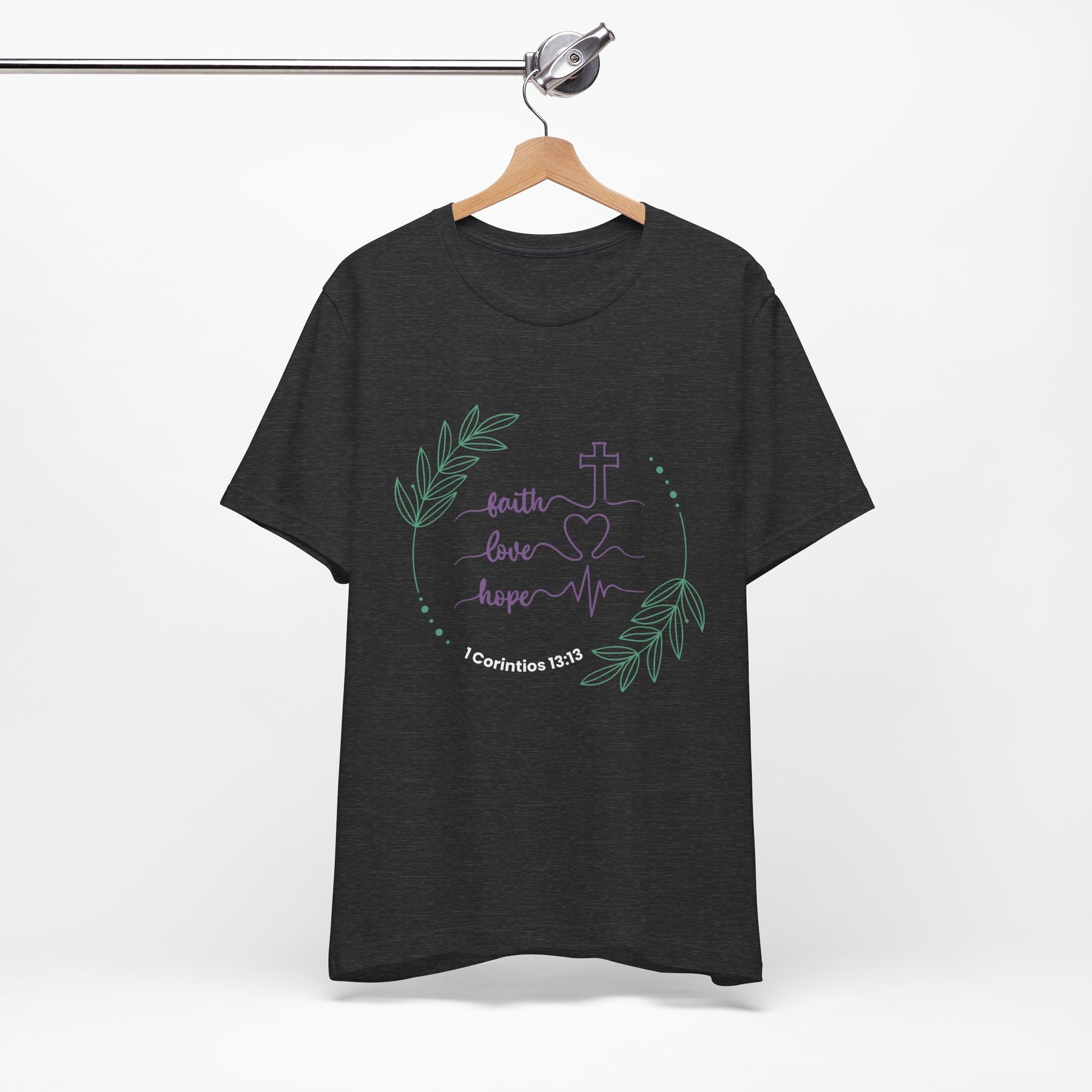 Embrace a blend of comfort and style with this Unisex Jersey Short Sleeve Tee. Crafted from 100% Airlume combed and ring-spun cotton, it feels soft against the skin, making it perfect for both active days and relaxed evenings. The lightweight fabric ensures breathability, keeping you cool during warm weather. Designed for versatility, this tee fits well in casual or semi-formal settings and easily pairs with your favorite accessories. Ideal for those who appreciate meaningful designs, it resonates especially with individuals who value faith, love, and hope. This product is not just apparel; it’s a daily reminder of positivity and connection, making it a thoughtful gift for holidays, church gatherings, or simply as a casual wear statement piece.